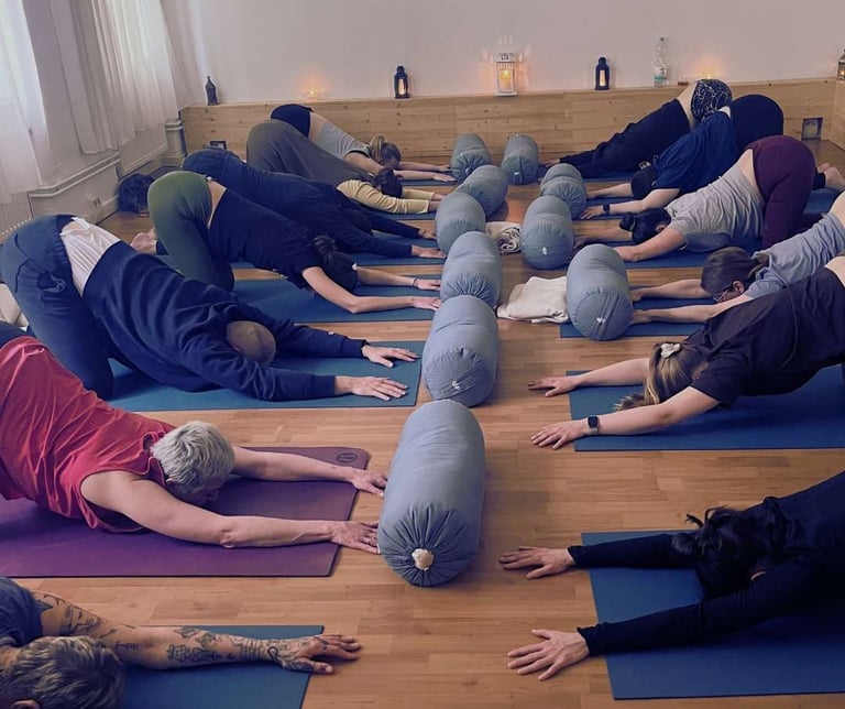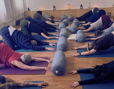 Slow, supported postures that allow the body to unwind naturally, promoting deep relaxation, deep rest, and a greater sense of ease in the body.