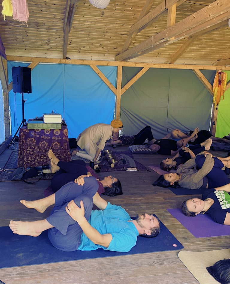 A blend of Kundalini and elements of somatic therapies (Somatic Experiencing & Bioenergetics) for nervous system reset through breath, movement, and voice.